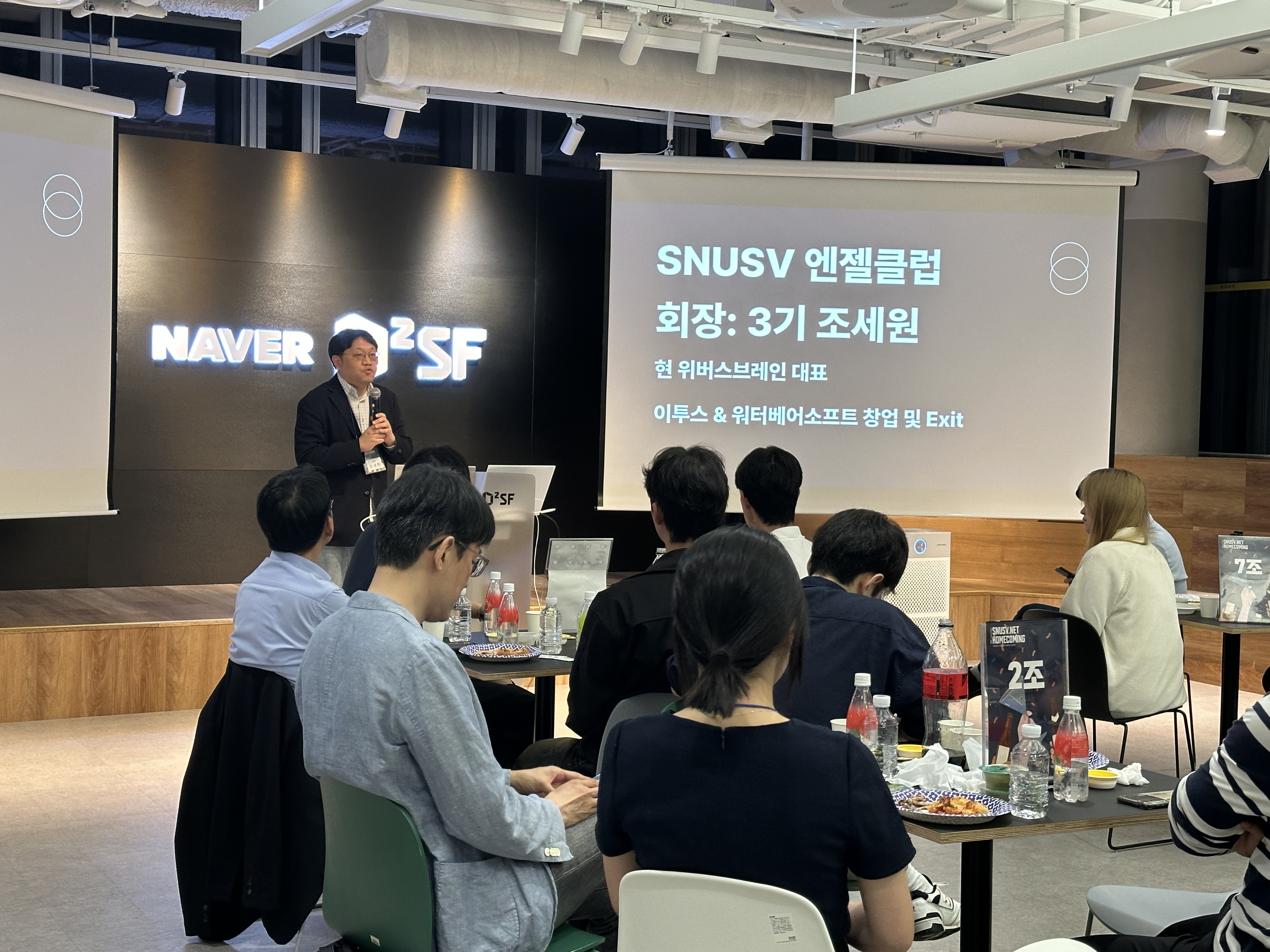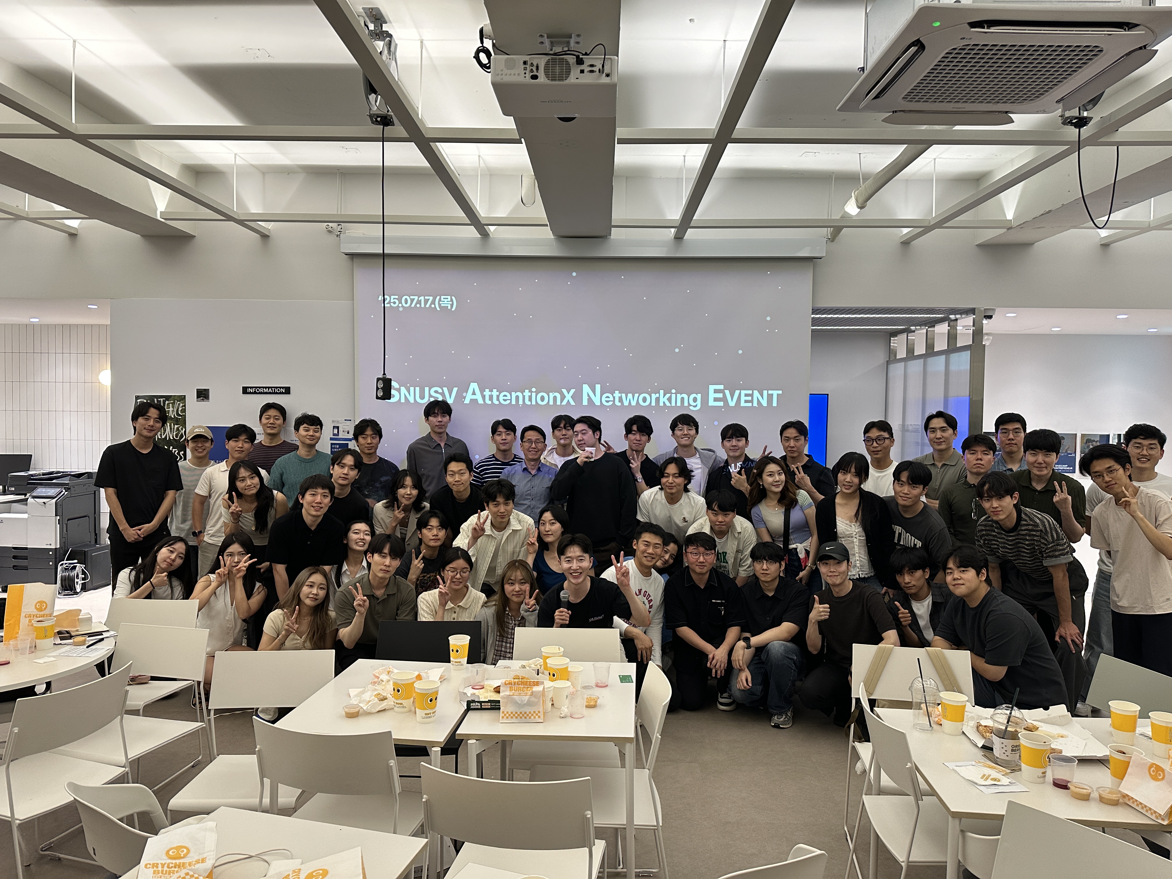 SNUSV 구성원 간 네트워킹을 활성화하고 친목을 도모하기 위해 목요일 세션 시간 이후 격주로 뒤풀이를 진행합니다. 이 시간을 통해 구성원들은 보다 자유로운 분위기에서 소통하며, 서로의 창업 아이디어와 관심사를 공유할 수 있습니다.