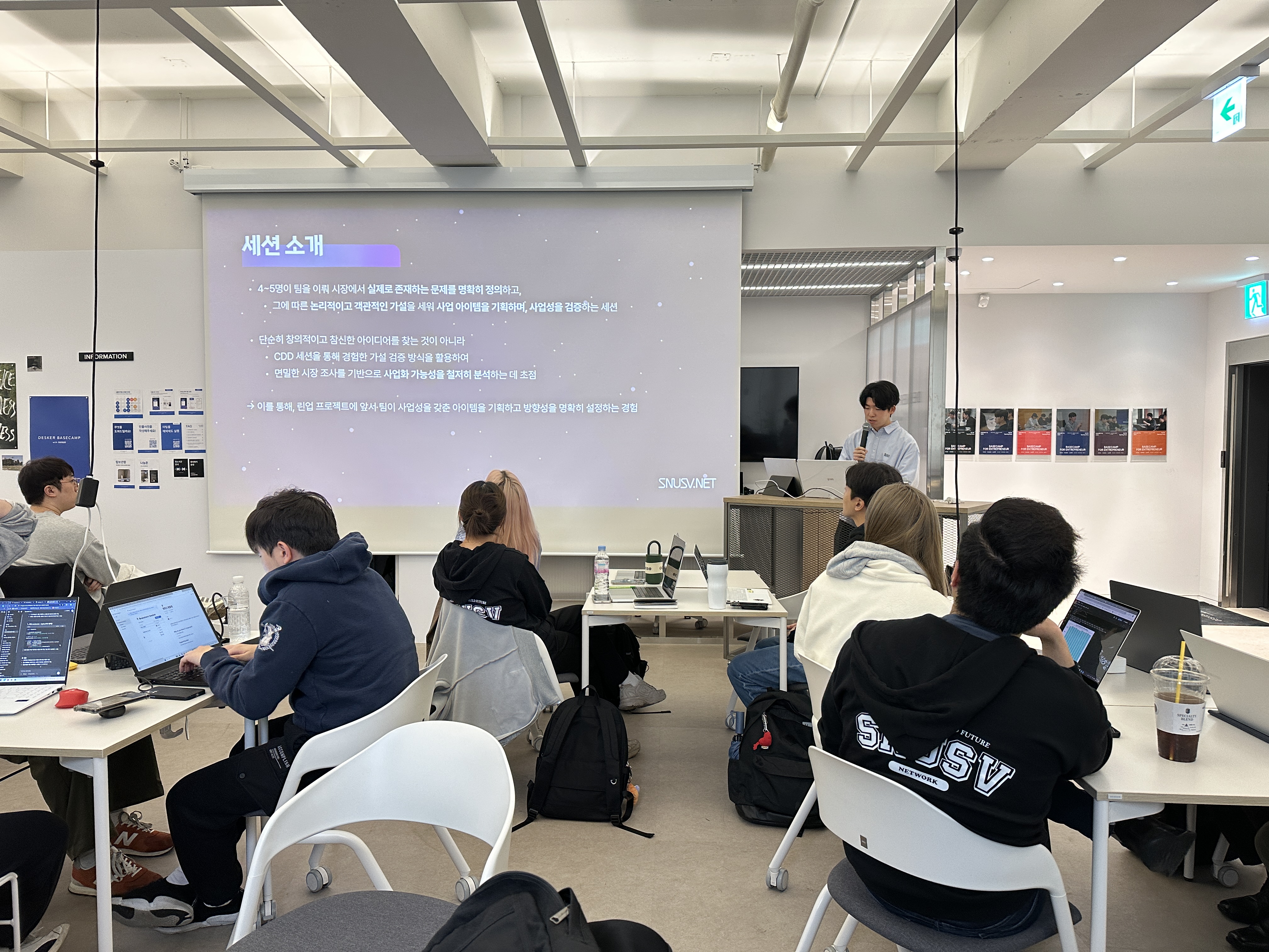 : 창업 관련 독서나 강의를 기반으로 SNUSV 구성원들과 생각을 공유하고 인사이트를 얻는 세션